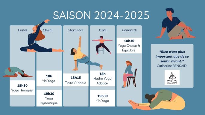 - Célébrez le yoga à travers des enchaînements de postures dynamiques développant la force, l’équilibre, la volonté, l’endurance, le lâcher-prise et la souplesse. Dans la synchronisation du souffle et de l’esprit par le mouvement, explorez des espaces en vous encore insoupçonnés !