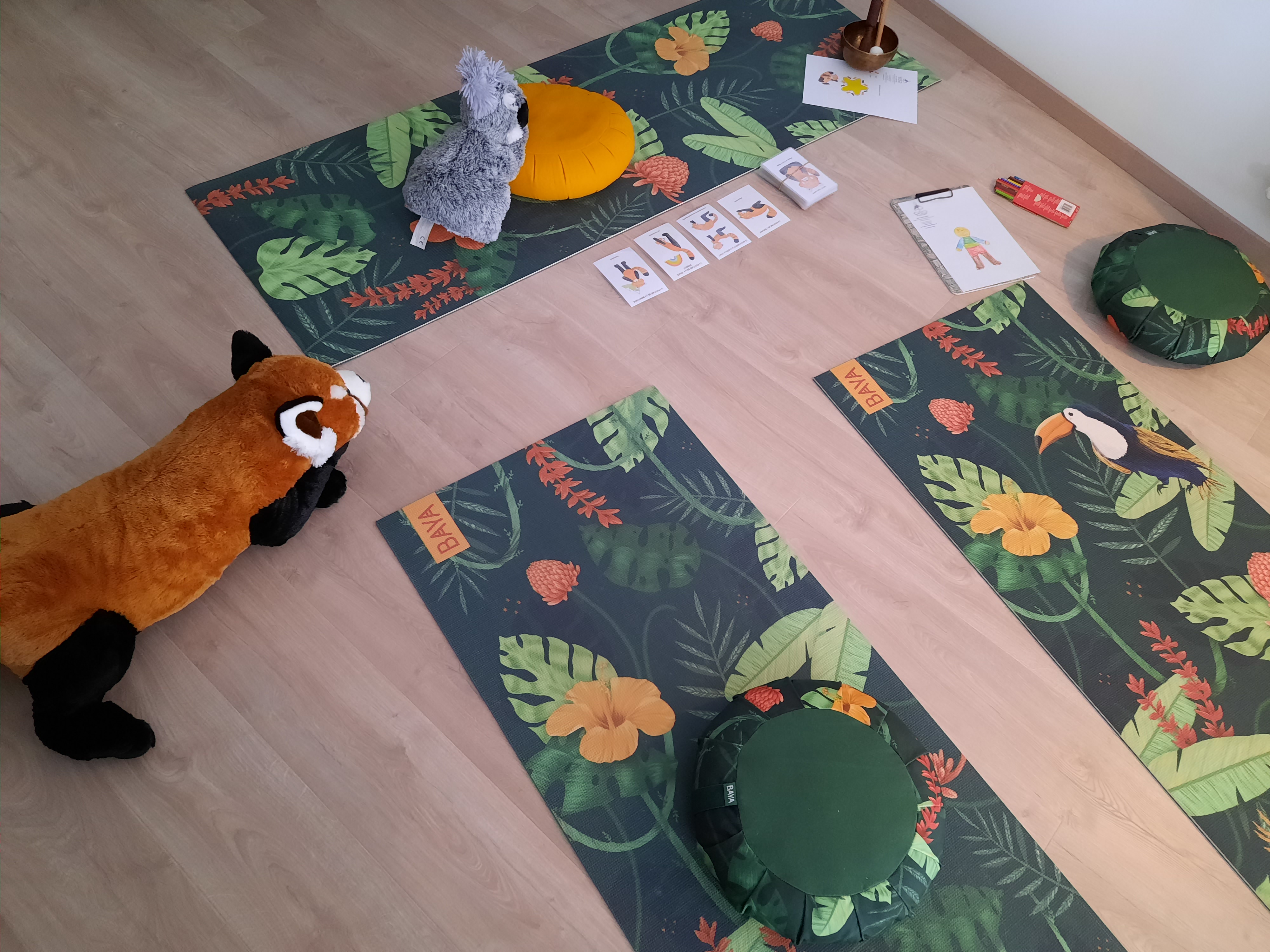 Pour cela, j’ai créé avec mon fils des Contes-Yoga mettant en scène ses peluches préférées : Happy, un petit panda roux plein de vie et Colibri, un petit oiseau guidé par la sagesse, qui vous feront voyager dans la joie et l’émerveillement, à la découverte de son corps, de son souffle, de sa magie intérieure.